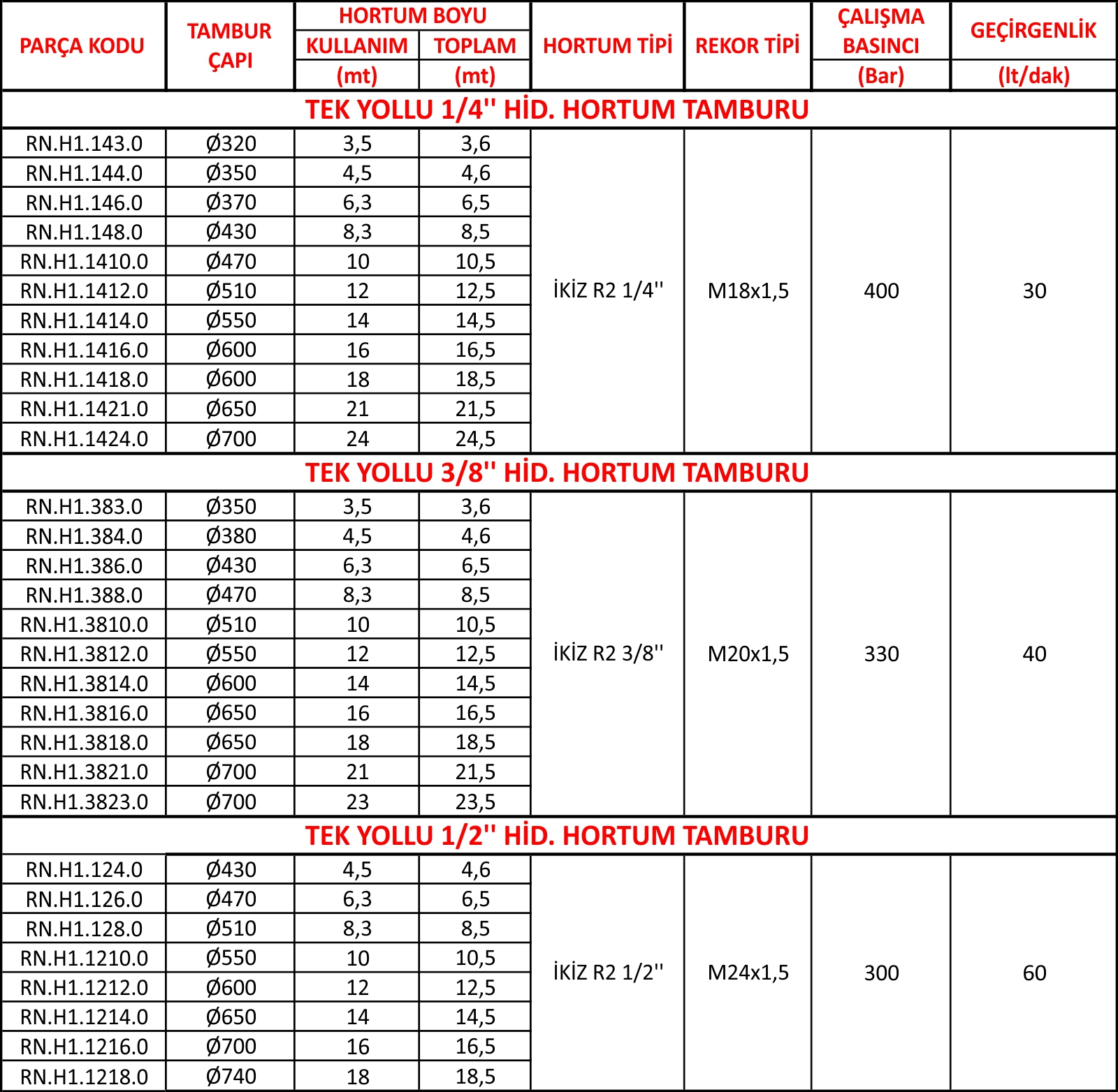 TEK YOLLU HİDROLİK HORTUM TAMBURU
